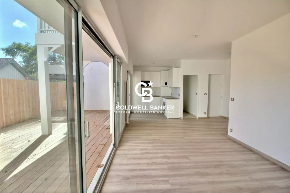 L'intérieur de cet appartement mêle avec subtilité des matériaux modernes et des touches d'architecture traditionnelle arcachonnaise. La pièce de vie est baignée de lumière grâce à de grandes ouvertures et s’ouvre sur une vaste terrasse orientée Sud-Est, offrant une vue dégagée sans vis-à-vis. La cuisine, entièrement aménagée et équipée, s’intègre parfaitement à cet espace convivial.
