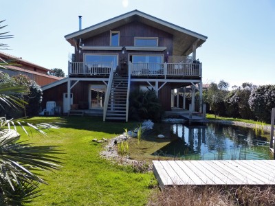 Proche Arcachon dans le quartier du Canelot le Port de plaisance de la Teste de buch, belle villa en bois récente à vendre.