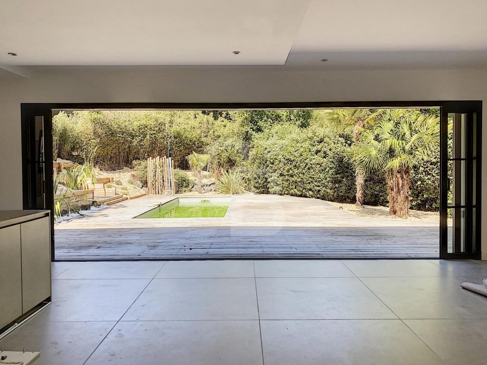 A l'extérieur, une belle terrasse entourant la piscine offre un cadre agréable, sans vis-à-vis, pour profiter du beau jardin paysager.