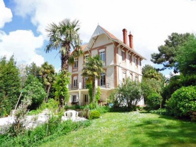 Dans une rue calme proche Pereire et Parc Mauresque : belle villa Arcachonnaise à vendre de 240 m2 sur un terrain arboré de 1200m2 avec piscine.