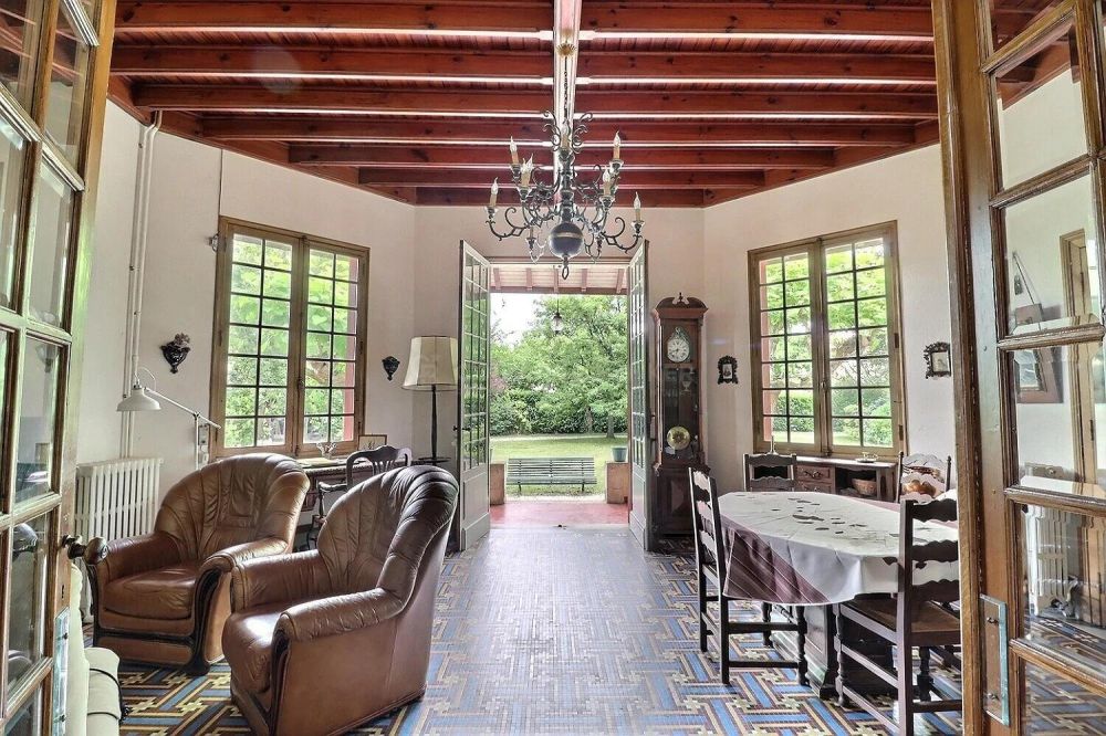 Construite en 1930, la villa présente des boiseries apparentes, pierre de taille, sols en mosaïque,...