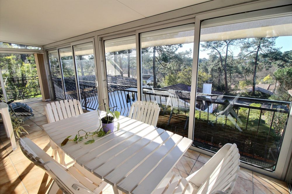 Elle est composée d'un séjour, d'une salle à manger, d'une cuisine, de 3 chambres ainsi que deux salles d'eau avec toilettes et une superbe véranda offrant une vue sur la pinède.